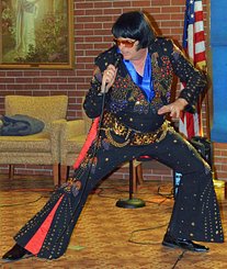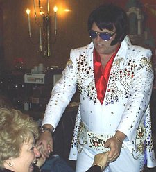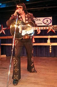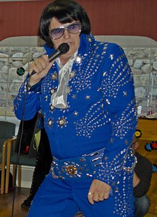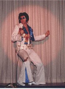 Aaron also performs in the famous Blue "Owl" suit and the stunning black and gold "Matador" suit. No other Elvis Impersonator in Colorado has such an impresssive and AUTHENTIC collection of suits!!